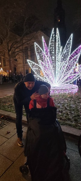 So, dann berichte ich Euch mal - die Krankenkasse hat mir diesmal meine Myofacziotomie genehmigt, wow… wir waren sprachlos. Im Februar geht es dann für uns wieder nach Barcelona – wir sind gespannt welche Punkte gemacht werden und, das ist der eigentliche Grund der Wiederholung - meine Wirbelsäule! Wir hoffen, dass durch die Myofacziotomie das ganze wieder etwas ins Lot kommt. Weiter ging es mit den Anträgen, ich brauche dringend einen neuen Geländebuggy, größer und mit Schiebehilfe Mama und Papa werden Alt und ich schwerer ?! Die Krankenkasse hat sofort abgelehnt, ich hab ja nen Rolli – es wurde ans Sozialamt weitergeleitet – warten, warten – nach gut 2 Monaten hat Mama mal nachgefragt, zwischenzeitlich Stiftungen angeschrieben und siehe da, die Kosten von fast 10 000 € sind zusammen -im Neuen Jahr werden wir meinen Neuen Geländewagen bestellen. Ihr seht immer was los bei uns, nebenbei noch Handball und Schiedsrichtern von Ben, Therapien, Arztbesuche… und hier und da Luft holen und Kraft tanken.
